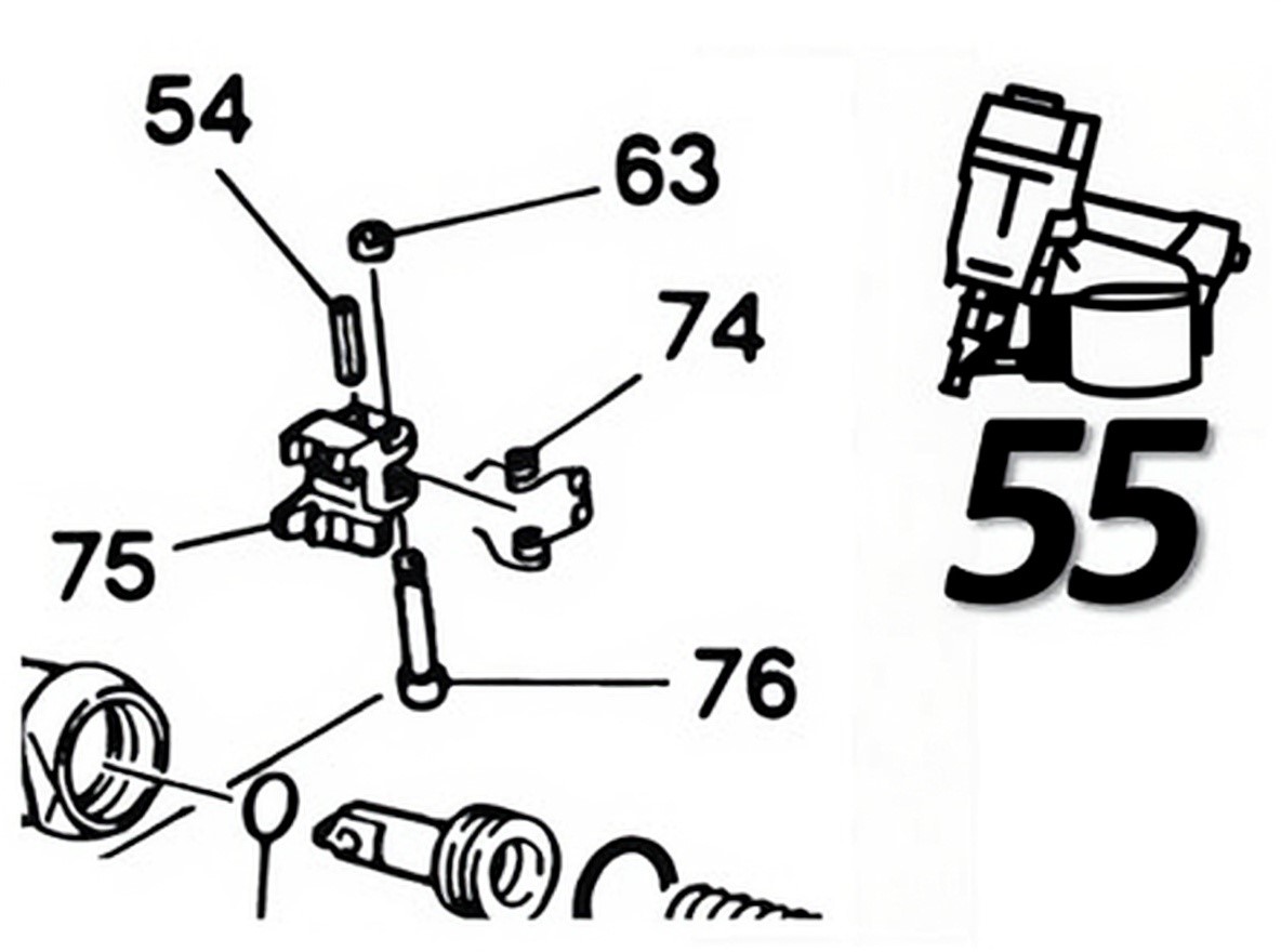 Jeżeli Twoja gwoździarka strzela na pusto mimo sprawnej zapadki, nie podaje gwoździ to najczęstszym powodem jest **zużyty sworzeń nr 54**. Jest to element, który odpowiada za prawidłową pracę mechanizmu podawania gwoździ i utrzymanie osiowości całego układu.