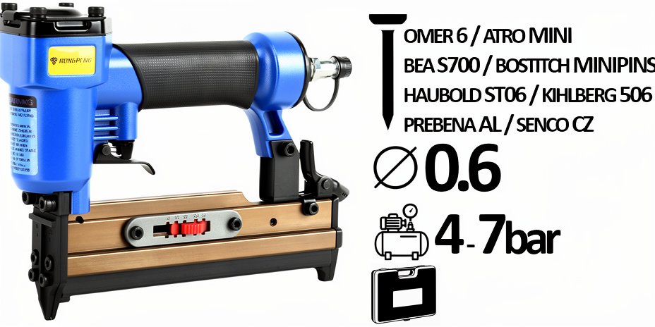 | Typ sztyftów | Bezłebkowe (bez łebka) — typ AL / S700 / CZ /// OMER: 6 / ATRO: MINI / BEA: S700 / BOSTITCH: MINIPINS / HAUBOLD: ST06 / KIHLBERG: 506 / PREBENA: AL / SENCO: CZ |